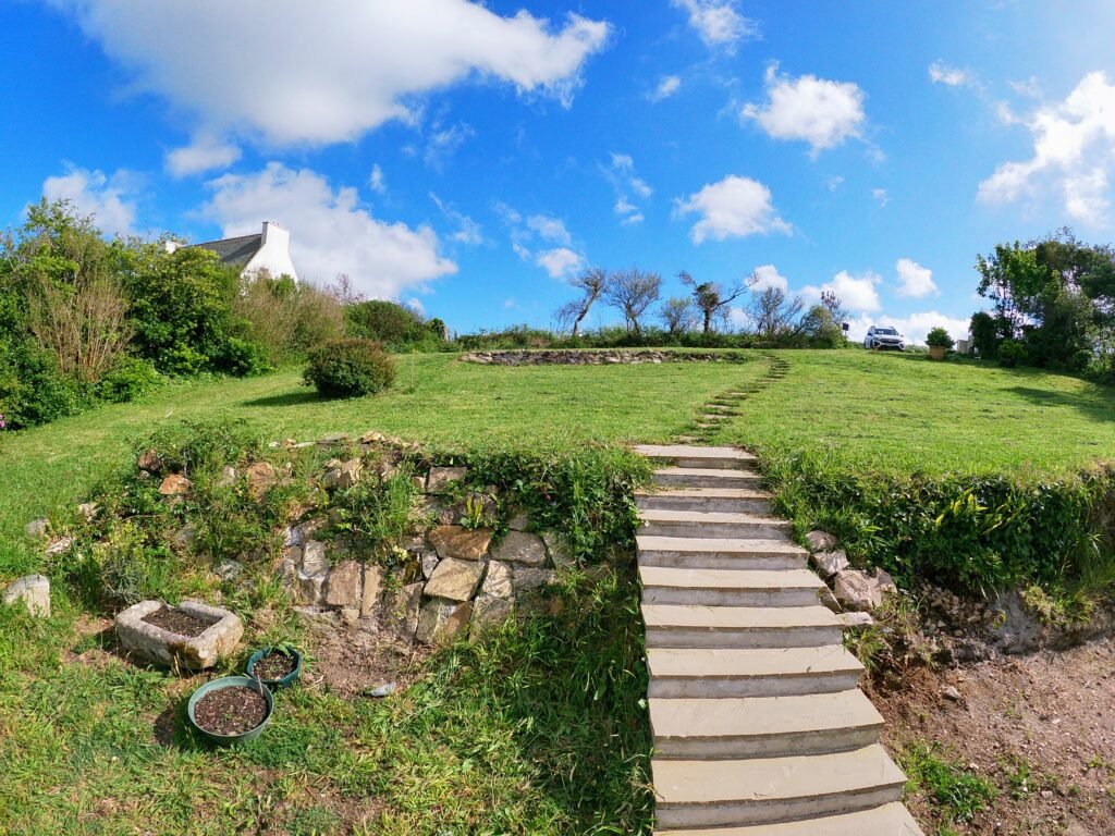 Jardin arboré et abrité du vent (à 2 pas du GR34). Sa taille et son intimité sont remarquables. Barbecue, jeux d’extérieurs, bronzette, à l’abri des regards.