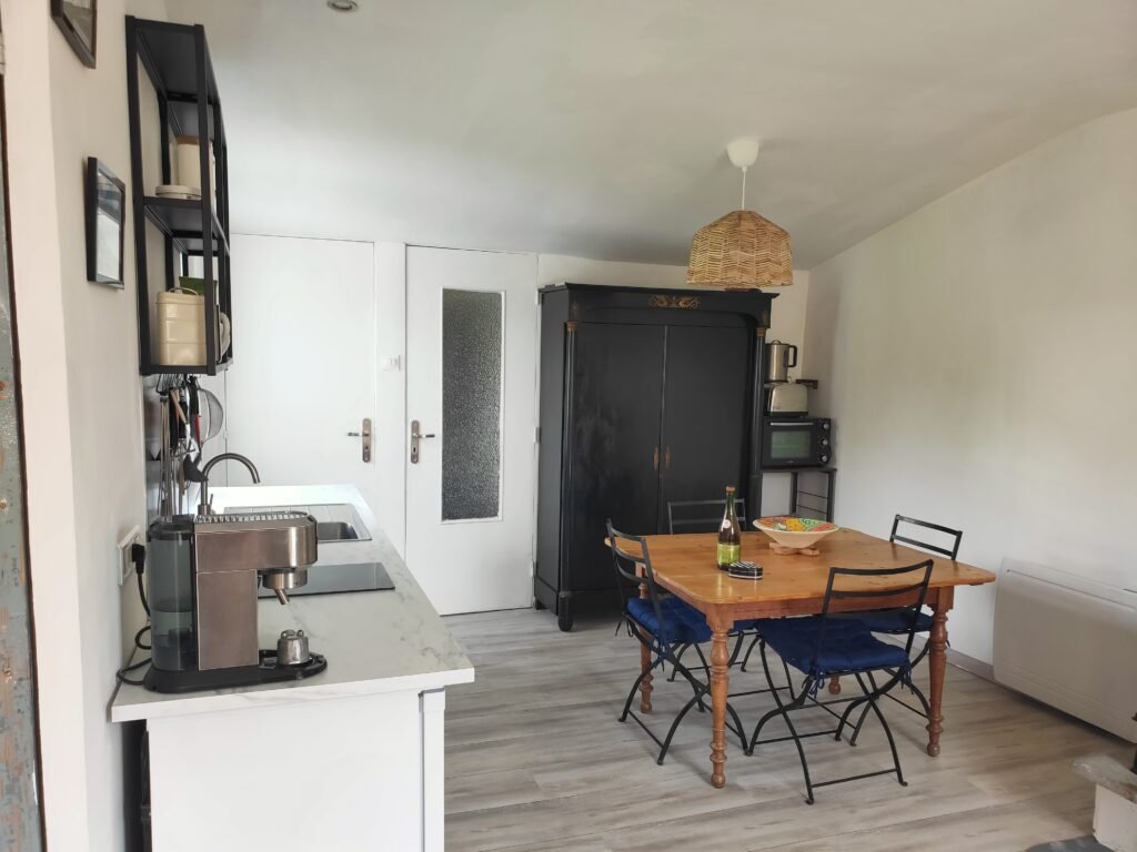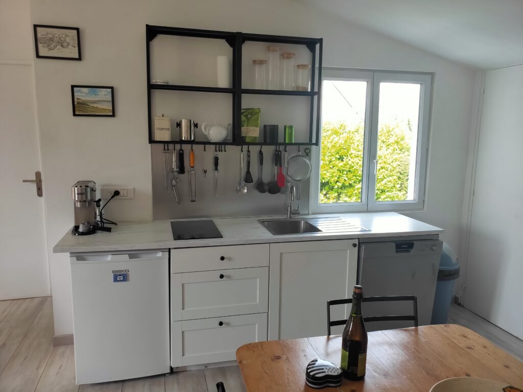 - Cuisine équipée avec lave-vaisselle, frigo, grand congélateur, machine à café